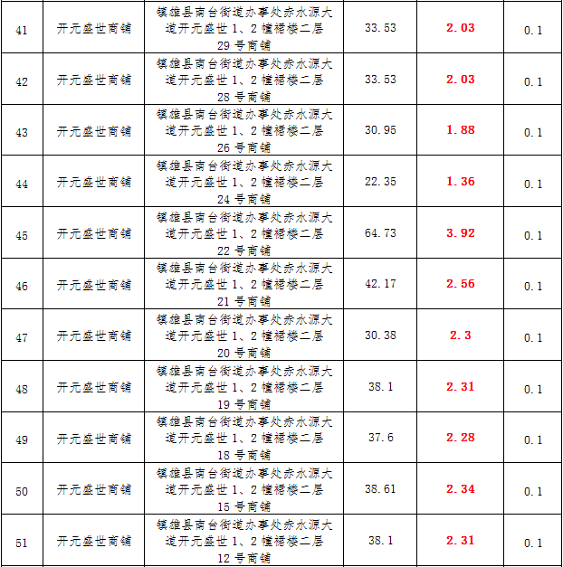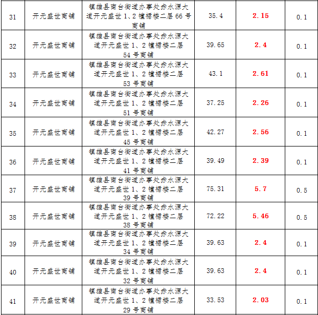(一)拍租鎮(zhèn)雄發(fā)展集團(tuán)有限公司國有門面3年期使用權(quán),詳見下表: